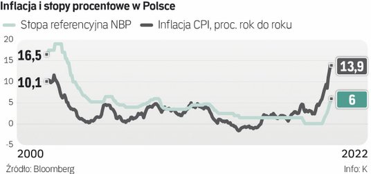 W maju, jak wstępnie oszacował GUS, inflacja przyspieszyła do 13,9 proc. rok do roku z 12,4 proc. miesiąc wcześniej. „Podwyższona inflacja wynika głównie z silnego wzrostu światowych cen surowców energetycznych i rolnych – w znacznej części będącego konsekwencją rosyjskiej agresji przeciw Ukrainie – oraz wcześniejszych wzrostów regulowanych krajowych taryf na energię elektryczną, gaz ziemny i energię cieplną. Inflacja jest także podwyższana przez efekty zaburzeń w globalnych łańcuchach dostaw i wysokie koszty transportu w handlu międzynarodowym” – wyjaśniła w środowym komunikacie RPP. Przyznała jednak, że „wzrostowi cen w Polsce sprzyja utrzymujący się wysoki popyt pozwalający przenosić przedsiębiorstwom wzrost kosztów na ceny finalne”.