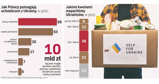 PIE oszacował też materialną wartość wsparcia udzielonego z prywatnych kieszeni Polaków. Mogło to być co najmniej 5,5 mld zł, a najbardziej prawdopodobna wartość mieści się w przedziale od 9 mld do 10 mld zł. To ogromna kwota, dla porównania – pomoc publiczna przyznana uchodźcom przez państwo to ok. 15,9 mld zł w skali roku.