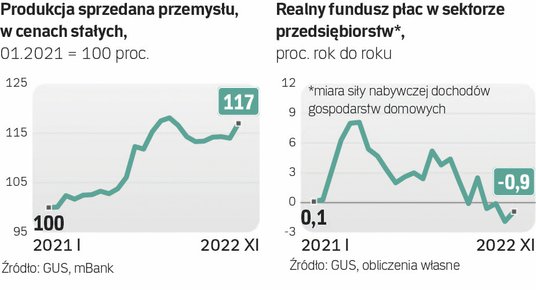 Nawet szybki wciąż wzrost płac nie wystarcza jednak, aby ochronić dochody gospodarstw domowych przed inflacją. W listopadzie realny fundusz płac – czyli miara siły nabywczej wynagrodzeń wszystkich zatrudnionych w sektorze przedsiębiorstw – zmalał o 0,9 proc. rok do roku po zniżce o około 1,9 proc. w październiku. Ekonomiści są zgodni, że to – w połączeniu z minorowymi nastrojami gospodarstw domowych – będzie tłumiło wzrost konsumpcji. Już teraz odczuwa to przemysł, szczególnie producenci dóbr trwałego użytku (meble, sprzęt RTV i AGD).