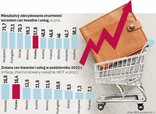 Niewiele lepsze nastroje panują w Grecji, gdzie zdecydowany strach przed inflacją wyraziło 70,3 proc. respondentów, ale w ogóle martwi ona prawie 96 proc. Podobnie duże obawy wyrazili Hiszpanie – zdecydowanie martwi ona aż 75,7 proc. z nich (w ogóle 92,2 proc.).