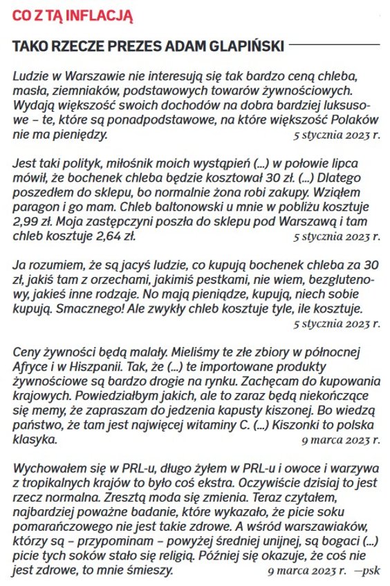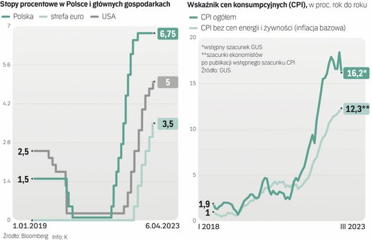 W uzasadnieniu środowej decyzji RPP odnotowała spadek inflacji w marcu do 16,2 proc. rok do roku z 18,4 proc. w lutym, podkreślając, że był to głównie efekt czynników zewnętrznych (niezależnych od krajowej polityki pieniężnej i kondycji gospodarki): wyhamowania wzrostu cen paliw (praktycznie do zera) oraz nośników energii. Sternicy polityki pieniężnej przyznali też, że pomimo osłabienia popytu konsumpcyjnego w Polsce firmy wciąż były w stanie przenosić wzrost kosztów na ceny końcowe swoich produktów i usług. Mimo to, tak jak w poprzednich miesiącach, RPP podkreśliła, że spodziewa się dalszego stopniowego spadku inflacji w kierunku celu inflacyjnego NBP (2,5 proc.), przy czym ma świadomość, że będzie to proces powolny.