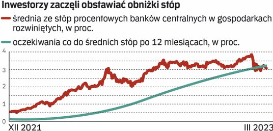 Napędzane ustępowaniem obaw o banki odbicie na rynkach akcji pozwoliło na odrobienie większości strat ze związanej z nimi wyprzedaży, a decydenci z szeregu instytucji pozostali przy jastrzębiej retoryce. Mimo to wymazanie z oczekiwań inwestorów podwyżek stóp okazało się trwałe – średnia stóp w gospodarkach rozwiniętych ma spaść w rok z obecnie notowanych 3,25 proc. poniżej 3,10 proc.