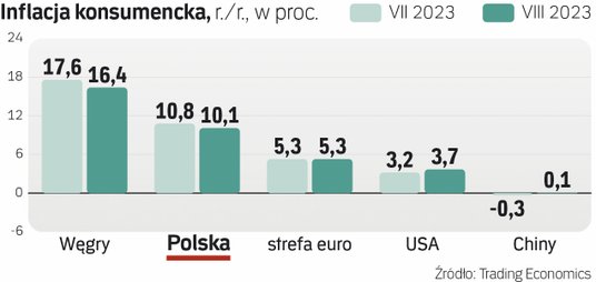W USA inflacja konsumencka była w zeszłym miesiącu niższa od głównej stopy procentowej Fedu. Takiego komfortu nie ma strefa euro. Inflacja konsumencka pozostała tam w sierpniu na poziomie 5,3 proc., podczas gdy główna stopa procentowa Europejskiego Banku Centralnego wynosi 4,25 proc. W niektórych dużych gospodarkach Eurolandu inflacja konsumencka przyspieszyła. We Francji skoczyła z 4,3 proc. w lipcu do 4,8 proc. w sierpniu, w Hiszpanii z 2,3 proc. do 2,6 proc., a w Niemczech wyhamowała tylko z 6,2 proc. do 6,1 proc. Wyższe sierpniowe odczyty z niektórych krajów da się częściowo wytłumaczyć efektem bazy oraz wzrostem cen ropy. Na podwyższonych poziomach pozostaje jednak też inflacja bazowa. W strefie euro wyhamowała tylko z 5,5 proc. w lipcu do 5,3 proc. w sierpniu. W Niemczech zmieniła się jedynie nieznacznie i wynosiła w sierpniu 5,5 proc.