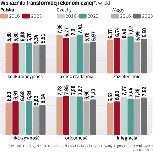 W większości państw Europy Środkowo-Wschodniej, Azji Środkowej, Bliskiego Wschodu i Afryki Północnej, w których działa Europejski Bank Odbudowy i Rozwoju, przeciętne oceny satysfakcji z życia są dziś wyższe niż w 2016 r. Polska jest jednym z niechlubnych wyjątków: poziom zadowolenia z życia prawie się u nas nie zmienił. Wśród przyczyn tej stagnacji – co pozwala zrozumieć również regres u części sąsiadów Polski – mogą być wojna w Ukrainie oraz wysoka inflacja. To jeden z wniosków, do których prowadzi „Raport o transformacji”, flagowa publikacja EBOR-u.