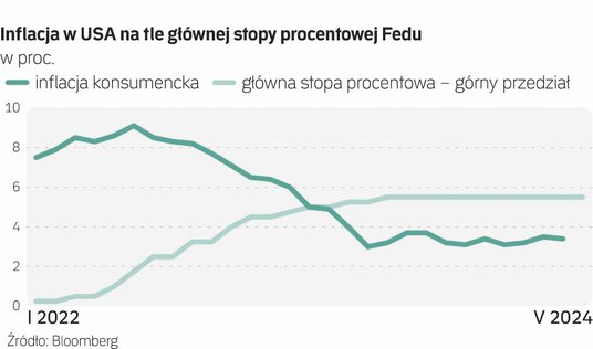 Inflacja konsumencka w USA nie przyniosła w środę nieprzyjemnej niespodzianki inwestorom. Wyhamowała ona z 3,5 proc. w marcu do 3,4 proc. w kwietniu, co było zgodne z prognozami. W porównaniu z poprzednim miesiącem ceny wzrosły o 0,3 proc., podczas gdy średnio się spodziewano ich zwyżki o 0,4 proc. Inflacja bazowa (czyli nieuwzględniająca zmian cen żywności, paliw i energii) zwolniła z 3,8 do 3,6 proc., co było zbieżne z oczekiwaniami. Licząc miesiąc do miesiąca, zeszła ona z 0,4 do 0,3 proc.