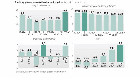 W sierpniu GUS przedstawi też wstępny szacunek dynamiki PKB w II kwartale 2024 r. Konsensus prognoz wskazuje, że nastąpiło przyspieszenie tempa wzrostu gospodarczego do 2,8 proc. rok do roku z 2 proc. w I kwartale br.
