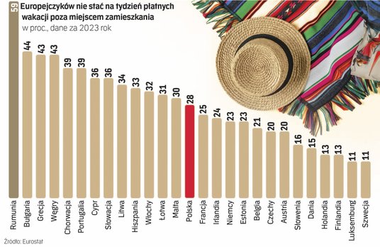 Widać to w informacji Eurostatu, gdzie ludzie odpowiadają na pytanie, czy stać ich przynajmniej na tydzień płatnych wakacji poza miejscem zamieszkania? W Polsce tych, których nie stać, jest 28 proc. To ciągle dużo, ale gorsza sytuacja jest w 14 innych państwach UE, w tym prawie wszystkich, które dołączyły do Wspólnoty razem z nami lub później (wyjątkiem są Czechy, Estonia i Słowenia). Większe wakacyjne ubóstwo jest w zbiedniałej w ostatnich latach Grecji, ale też we Włoszech, Hiszpanii czy Portugalii. Dane Eurostatu mówią wyraźnie o sytuacji materialnej. Nie chodzi o to, że ktoś nie ma ochoty na wyjazd, bo mieszka w przyjemnym miejscu, albo nie lubi jeździć. Ludzi pytano, czy byłoby ich stać, gdyby chcieli pojechać na wakacje.