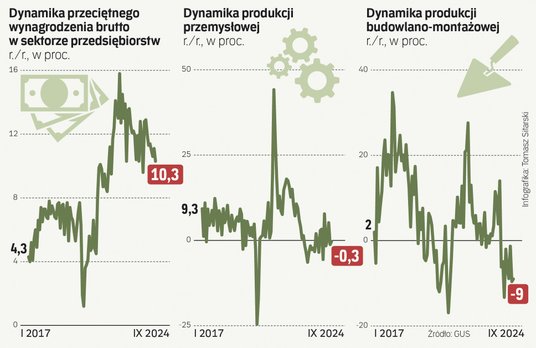 Konsensus prognoz ekonomistów, według ankiety „Rzeczpospolitej” i „Parkietu”, sugerował, że we wrześniu produkcja przemysłowa w Polsce urośnie o 0,3 proc. rok do roku. Rzeczywistość okazała się gorsza – odnotowano spadek w takiej skali. W dokładnie połowie z 34 działów przemysłu produkcja r/r urosła, najbardziej w wydobyciu węgla kamiennego i brunatnego (o 21 proc.). W drugiej połowie branż odnotowano spadki – w tym najmocniejszy, o blisko 19 proc., w produkcji pozostałego sprzętu transportowego.