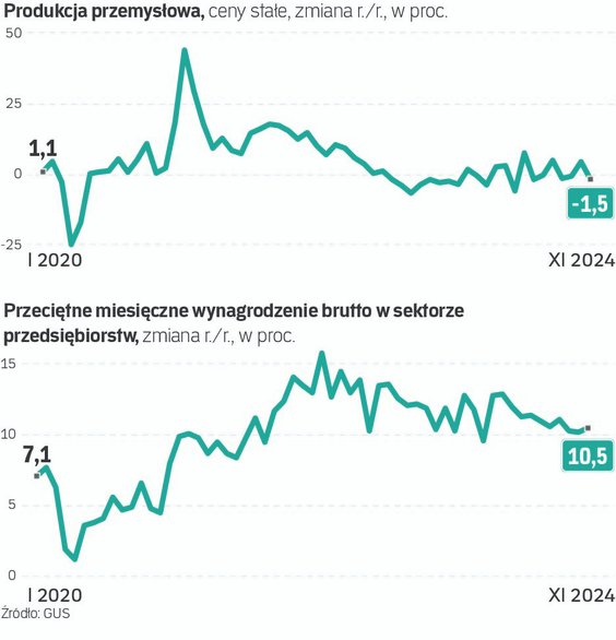 Próżno szukać w czwartkowych danych GUS z polskiej gospodarki czegoś, co ewidentnie wywraca stolik – już prędzej potwierdza tendencje lub chłodzi rozgrzane głowy. Do tej drugiej kategorii można zaklasyfikować dane o produkcji przemysłowej. Ta w listopadzie spadła o 1,5 proc. rok do roku, poniżej prognoz ekonomistów (+0,3 proc. według ankiety „Rzeczpospolitej” i „Parkietu”). To mały kubeł zimnej wody po danych z poprzedniego miesiąca, gdy odnotowano wzrost aż o 4,6 proc. rok do roku (i tyleż samo miesiąc do miesiąca, po odsezonowaniu), powyżej jakichkolwiek prognoz. Tamte dane były tak zaskakująco dobre, że aż cieszył się z nich na platformie X premier Tusk.