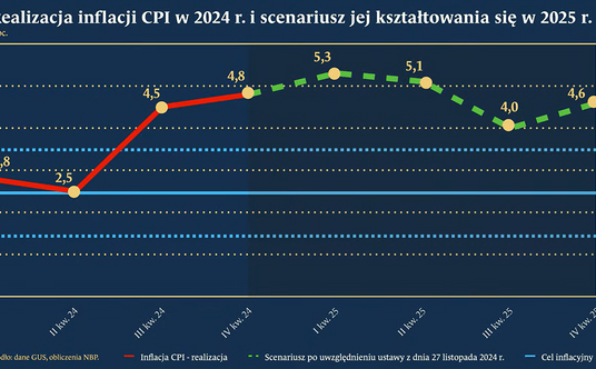Zgodnie z aktualnymi prognozami NBP, w pierwszej połowie 2025 r. inflacja ma jeszcze wzrosnąć i średniokwartalnie przekraczać 5 proc. W trzecim ma spaść (średnio do 4 proc. według NBP), ale w czwartym, przy założeniu odmrożenia cen energii dla gospodarstw domowych na poziomie aktualnych taryf, znów urosnąć w okolice 4,6 proc.