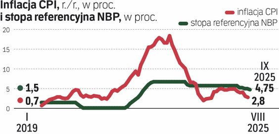 Podczas czwartkowej konferencji po posiedzeniu Rady Polityki Pieniężnej (na którym obniżono stopy procentowe o 25 punktów bazowych) prezes NBP Adam Glapiński mówił, że w Radzie „jest ostrożna chęć do obniżek stóp”. – Każda z możliwości wchodzi w grę: brak obniżek do końca roku, jedna albo dwie – mówił. Zwracał uwagę, że sierpniowy szybki odczyt inflacji 2,8 proc. r/r to wynik niemal w środku celu inflacyjnego NBP.