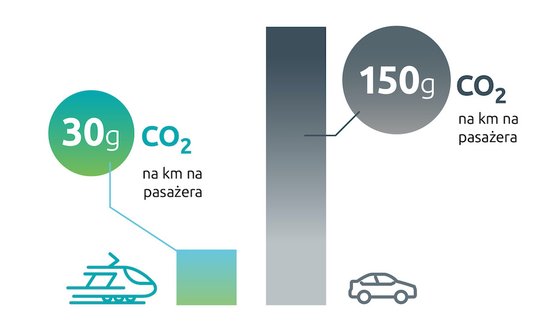 Kolej w Polsce przewiozła w 2019 roku ponad 355 mln pasażerów. Dlaczego coraz więcej osób na podróż wybiera właśnie ten środek transportu? Kolej jest bezpieczna, komfortowa i szybka. Co równie ważne, jest także najbardziej ekologicznym lądowym, zbiorowym środkiem transportu. Kiedy z samochodu przesiadamy się do pociągu, nie tylko oszczędzamy czas i omijamy korki, ale także realnie przyczyniamy się do mniejszej emisji dwutlenku węgla do atmosfery. Jazda samochodem oznacza średnio 5-krotnie wyższą emisję CO2 niż podróż pociągiem1.