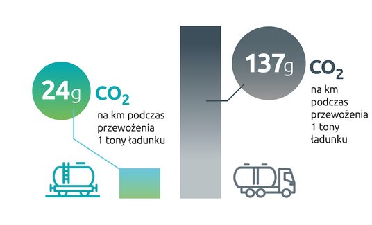 Różnice są jeszcze większe, gdy porównujemy transport kolejowy i drogowy. Emisja CO2 podczas przewożenia 1 tony ładunku koleją to około 24 gramy na kilometr. Z kolei samochody ciężarowe emitują aż 137 gramów dwutlenku węgla do atmosfery2.