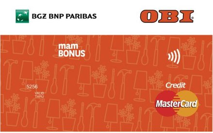 W pierwszym z banków wybierać można między kartami OBI MasterCard, Praktiker MasterCard, Bricomarche MasterCard i Euro MasterCard.