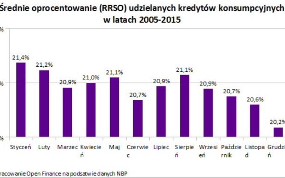 Jak podaje Open Finance, podczas gdy w ostatniej dekadzie kredyty udzielone w grudniu miały przeciętne RRSO na poziomie 20,2 proc., to w średnia z pozostałych miesięcy wynosi 21 proc.