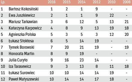Ranking młodych artystów I W ścisłej czołówce Bartosz Kokosiński, Ewa Juszkiewicz i Mariusz Tarkawian
