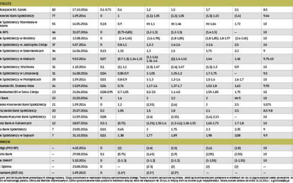 Średnie oprocentowanie dziesięciu najlepszych lokat rocznych wynosi 2,1 proc. Jest o 0,7 pkt proc. wyższe od przeciętnej na rynku stawki dla takiego terminu (1,4 proc.). W porównaniu z wrześniem oprocentowanie depozytów 12-miesięcznych jest w zasadzie bez zmian.