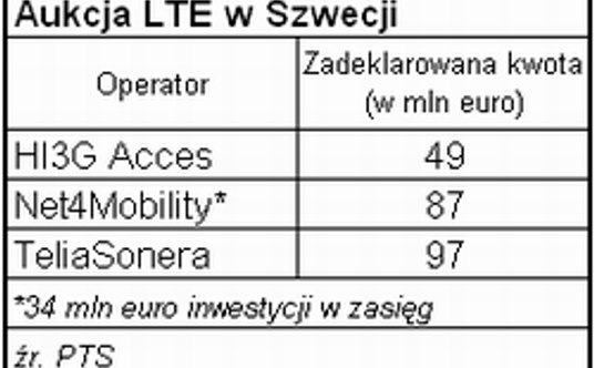 Na taką kwotę szacuje wpływy z zakończonej właśnie aukcji częstotliwości radiowych szwedzki Urząd Poczty i Telekomunikacji (szw. Post- och telestyrelsen, PTS). Kwota, jaką zainkasuje skarb państwa jest faktycznie o 34 mln euro (300 mln szwedzkich koron) niższa, ponieważ stanowi deklarację inwestycji na terenach tzw. białych plam telekomunikacyjnych. Na jednym z wylicytowanych kanałów radiowych bowiem zwycięzca ma obowiązek zapewnić takie usługi (pozostałe licencje nie nakładają żadnych zobowiązań, co do tempa rozwoju sieci).