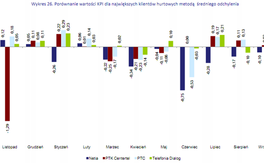 [i]Niepokojące są najniższe wartości zagregowanych KPI w przypadku największego konkurenta TP na rynku detalicznym – Netii. Przedstawione na wykresach dane mogą sugerować, iż TP gorzej traktuje lub wręcz dyskryminuje, swojego największego klienta (w stosunku do innych klientów). Dyskryminacja w poziomie obsługi dla Netii (najniższy poziom spośród powyższych operatorów) widoczna jest dla miesięcy: grudzień, styczeń, kwiecień, czerwiec, lipiec, sierpień, wrzesień[/i] – napisał [b]Urząd Komunikacji Elektronicznej[/b] w komentarzu do raportu.