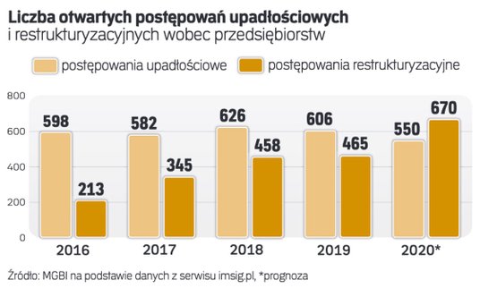 Choć już od marca br. pandemia Covid-19 daje się we znaki przedsiębiorcom z wielu branż, to wprowadzone ograniczenia w działalności nie przełożyły się jak dotąd na liczbę ogłaszanych bankructw. Do końca października sądy gospodarcze wydały w sumie 453 postanowienia o ogłoszeniu upadłości – o 45 mniej niż w podobnym okresie rok wcześniej. Szacujemy, że liczba otwartych postępowań upadłościowych wobec przedsiębiorstw w 2020 r. nie przekroczy 550, a więc będzie o około 8 proc. niższa niż przed rokiem.