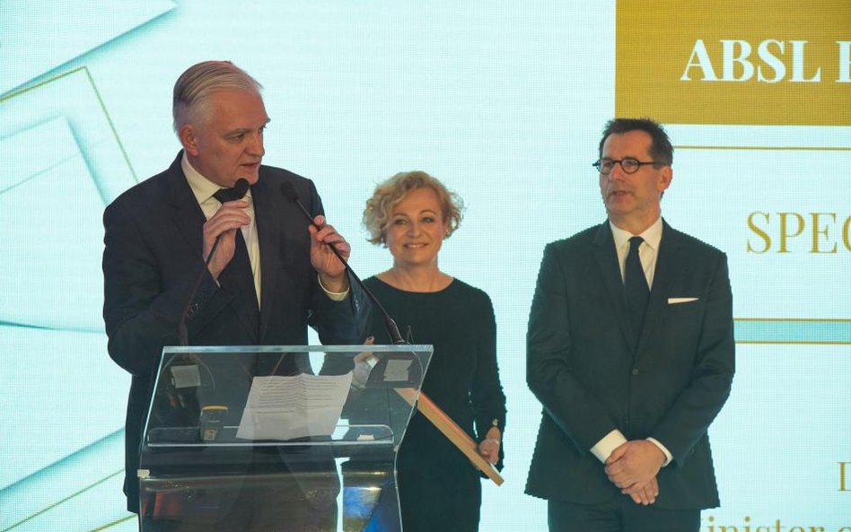 Jarosław Gowin odebrał podczas czwartkowej Gali ABSL wyróżnienie specjalne za znaczące zasługi w budowaniu dialogu między rządem a pracodawcami, wspierającego rozwój innowacyjnej gospodarki. Pod tą oficjalną formułą kryje się wdzięczność sektora nowoczesnych usług dla biznesu (BSS) za zdecydowany sprzeciw wicepremiera i ministra nauki wobec zniesienia limitu 30-krotności składek na ZUS- co dotkliwie uderzyłoby w firmy z tej branży ograniczając jej rozwój.