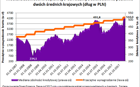 512 tys. złotych – przeciętnie tyle mogłaby pożyczyć trzyosobowa rodzina, która zadłużyłaby się na 30 lat, a w której oboje rodzice pracowaliby przynosząc do domu co miesiąc średnią krajową. Zdolność jest więc o 20 tysięcy wyższa niż rok temu – wynika z obliczeń Open Finance.