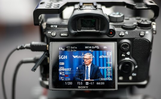 W Studiu „Rzeczpospolitej” ostatnie przygotowania do rozmowy Pawła Czuryło z Maciejem Trybuchowskim, prezesem Krajowego Depozytu Papierów Wartościowych.