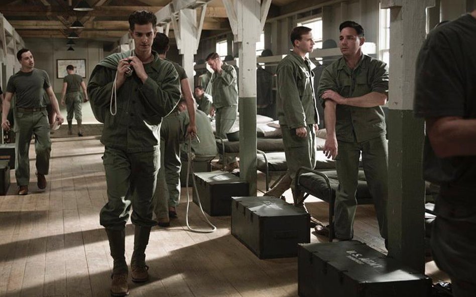 Ta bitwa to determinacja Japończyków za nic mających swoje życie i desperackie wysiłki Amerykanów rozrywanych stadnie w strzępy – nie tylko w przenośni, ale i dosłownie. I w tym wszystkim jest on, Desmond Doss (gra go prosto i przekonująco Andrew Garfield). Gdy padła komenda, by pod osłoną nocy zdziesiątkowany oddział wycofał się do bazy, został samotnie na pobojowisku, do rana wynosząc na chuderlawych plecach i przekazując w bezpieczne miejsce rannych, i to nie tylko Amerykanów, ale i Japończyków. Uratował w ten sposób 75 żołnierzy. Zapytany, jak dokonał tak niemożliwej rzeczy, powiedział, że po uratowaniu każdego kolejnego nieszczęśnika, prosił Boga, by pozwolił mu ocalić jeszcze jednego.