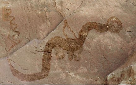 Położona opodal drogi okrągła skała skrywa na swojej powierzchni zagadkową scenę porodu. Gdy Bertram Tsavadawa ujrzał tę postać, od razu stwierdził, że chodzi o mit narodzin ludzkości. Zajmuje on centralne miejsce w mitologii Indian Hopi, wierzących, że u zarania dziejów ludzie żyli pod ziemią, a potem rozproszyli się na cztery strony świata i zaczęli mówić różnymi językami, dając początek wszystkim ludom na ziemi.