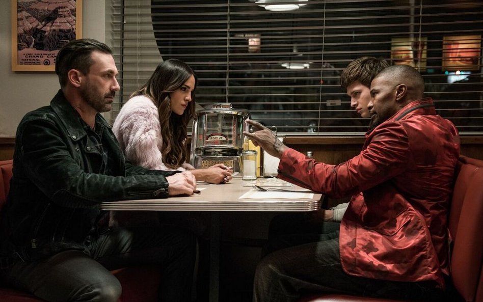 Dostajemy jednak i wzruszającą opowieść o rodzicach chłopaka, którzy zginęli w wypadku samochodowym. On też jechał z nimi, ale przeżył. Pozostała mu trauma i blizny na twarzy. A także permanentny uraz głowy i szum w uszach, który próbuje zagłuszać muzyką, stąd nieodłączne słuchawki. Pojawia się też piękna kelnerka (Lily James), z którą snuje marzenia, by ruszyć autostradą w głąb Ameryki.
