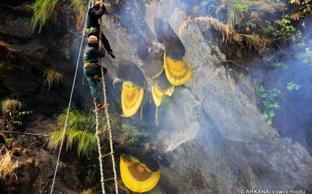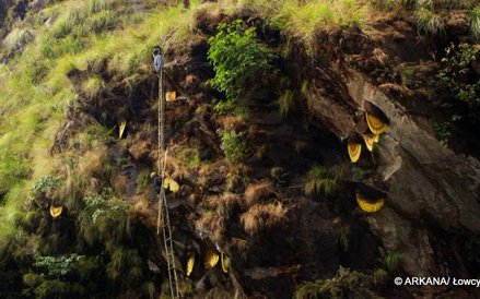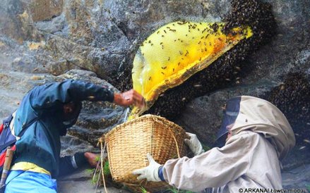 Najbardziej ekstremalne zdjęcia nakręcone zostały w Nepalu, gdzie pszczoły żyją na bardzo urwistych skałach nad rwącymi rzekami. – W ten sposób bronią dostępu do owoców swojej pracy – mówi reżyser. – Przystosowane są do życia na dużych wysokościach, z których zlatują, gdy się robi zima. Tworzą ogromne rodziny, jeden plaster miał rozmiar dwa metry na półtora.