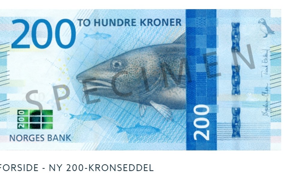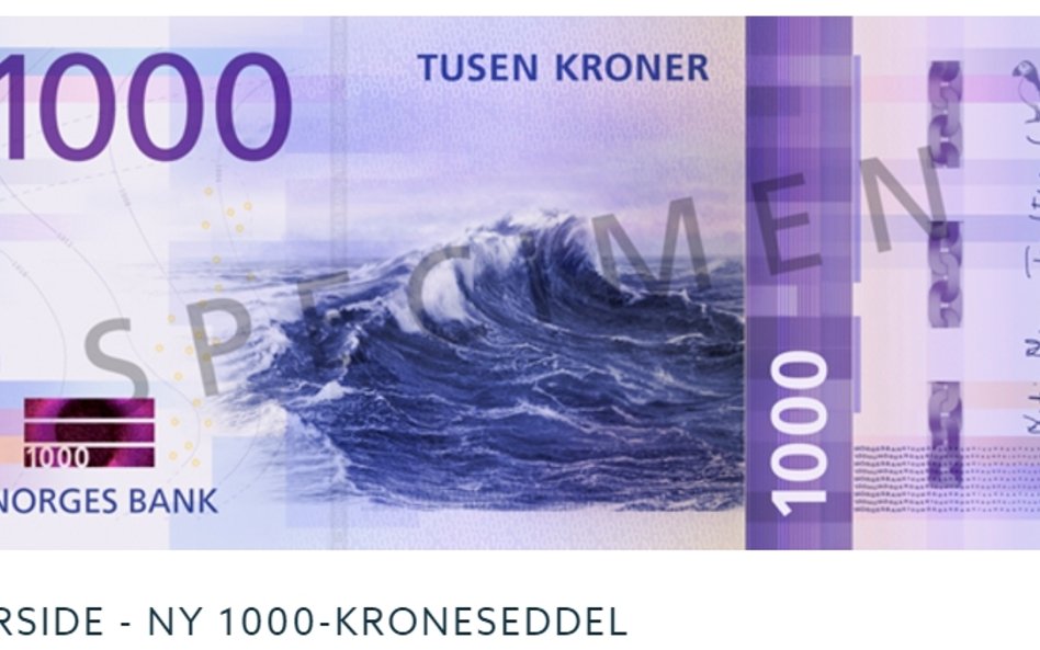 Ocean, statki, ryby, łodzie Wikingów, latarnia morska - znalazły się na nowych banknotach wyemitowanych przez Bank Norwegii. I ani jednego człowieka.