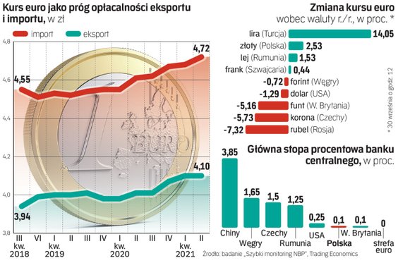 W czwartek złoty ponownie zachowywał się bardzo zmiennie, około godz. 12 za jedno euro trzeba było płacić 4,64 zł, co jest najwyższym poziomem od marca tego roku. Po południu nasza waluta nieco umocniła się wobec unijnej – do 4,59 zł, ale nie zmienia to faktu, że pozostaje mocno niedoszacowana. Punkt równowagi pary euro/złoty, jak wynika z badań wśród przedsiębiorców prowadzonych przez Narodowy Bank Polski, to obecnie 4,1 zł.