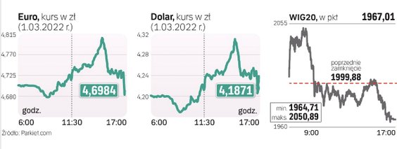 To, co jednak działo się we wtorek na rynku, przeszło najśmielsze oczekiwania. Złoty po godzinie 10.00 zaczął deprecjację. Z każdą kolejną godziną handlu przyjmował coraz mocniejsze ciosy. Wydawało się, że gorzej być już nie może, ale każdy kolejny fragment notowań zmuszał do rewizji poglądów. W pewnym momencie złoty osłabiał się wobec głównych walut nawet o ponad 2 proc. Takie ruchy na rynku walutowym są rzadkością. W pewnym momencie za euro trzeba było płacić ponad 4,80 zł. Tylko więc w ciągu jednego dnia nasza waluta traciła wobec euro ponad 10 gr i była najsłabsza od 2009 r. Wycena dolara skoczyła do 4,31 zł.