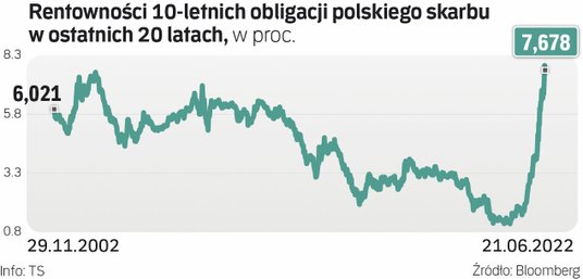 Jednocześnie na podwyżki zdecydowały się banki Anglii i Szwajcarii, a jastrzębi zwrot zapowiedział EBC. W takim otoczeniu podatny na niekorzystne wiadomości i płytki rynek obligacji w Polsce mocno się przecenił, jednak czynniki krajowe miały znaczenie drugorzędne. – Przy niskich obrotach inwestorzy zażądali za pożyczanie rządowi wyższej premii – zauważa Paczuski.