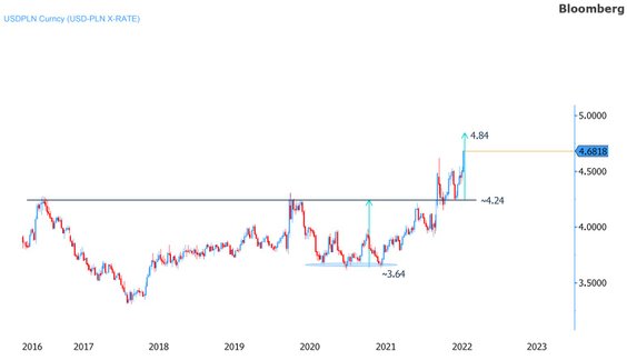 W środę złoty kontynuuje osłabienie z wtorku. Wczesnym popołudniem za euro płaci się prawie 4,79 zł., o 0,8 proc. więcej niż dzień wcześniej, a za dolara 4,68 zł – o 1,3 proc. więcej. Jeśli nie liczyć paniki z pierwszych dni rosyjskiej inwazji na Ukrainę, to wobec euro złoty jest najsłabszy od dna kryzysu po upadku banku Lehman Brothers w 2008 r. Tymczasem kurs dolara przebił już szczyt z marca i jest najwyżej od 2000 r.