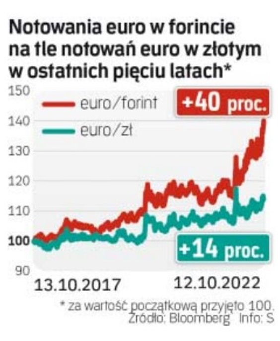 Nieustępujące problemy z inflacją i załamanie forinta najwyraźniej skłoniły władze Węgier do rozważenia zmiany nastawienia do przyjęcia euro. Minister finansów w rządzie w Budapeszcie przyznał, że kraj może wejść do mechanizmu kursowego ERM-2. Mechanizm, który ogranicza wahania kursu waluty krajowej wobec euro, jest niczym innym, jak poczekalnią dla krajów planujących przyjęcie wspólnej waluty.