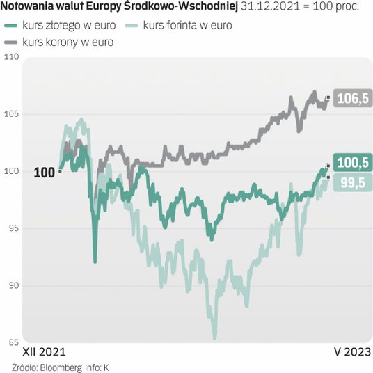 Jak zauważa Wojciech Stępień, ekonomista z BNP Paribas, w minionym miesiącu złoty nie tyle wyróżniał się na tle innych walut naszego regionu, ile nadrabiał zaległości. Rzeczywiście, biorąc pod uwagę minione trzy miesiące, złoty umocnił się wobec euro dokładnie tak samo jak węgierski forint i nieco bardziej niż korona czeska. Biorąc pod uwagę pół roku, zdecydowanym liderem był forint (zyskał wobec euro 8,4 proc.), druga była korona, a złoty dopiero trzeci.