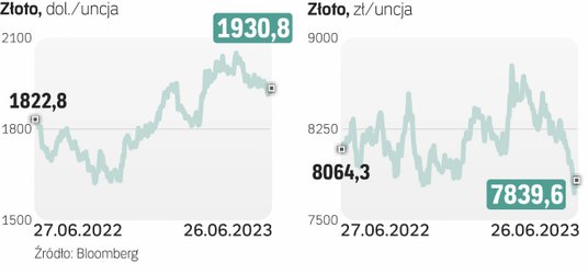 W poniedziałek za jedną uncję złota na światowych rynkach płacono 1931 dolarów, co oznaczało zwyżkę o 0,7 proc. Oznacza to, że złoto wyceniane w dolarze umocniło się w tym roku o niecałe 6 proc. przy 5-proc. przecenie srebra. W związku ze spadkiem kursu dolara krajowi inwestorzy jednak nie mają wielu powodów do zadowolenia. W połowie czerwca cena uncji złota spadła poniżej 8 tys. zł. W poniedziałek sięgała 7841 zł i było to o 1,8 proc. mniej niż na zamknięciu 2022 r.