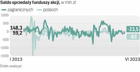– Te klasy aktywów muszą się wykazać długoterminowymi solidnymi zwyżkami, zanim przykują uwagę inwestorów. Jest to oczywisty błąd, powielany przez inwestorów bardzo często. Gdy zbyt długo zwlekamy z inwestycjami w trendzie wzrostowym, większość zwyżek odbywa się bez naszego udziału – wskazywał Chłopek. Co ciekawe, w ostatnich trzech miesiącach – mimo dobrej kondycji rynków – umorzenia w funduszach akcji zaczęły nawet przybierać na sile. W kwietniu, maju i czerwcu z tych produktów uciekło łącznie 0,38 mld zł netto, tymczasem jeszcze na przełomie lat 2022 i 2023 pojawiały się nieśmiałe wpłaty – wynika z danych Analizy.pl. A jak napływy do funduszy akcji kształtował się w poprzednich latach?