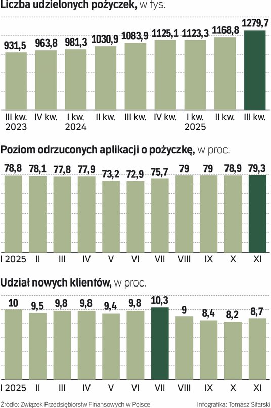 Zatrudnienie w sektorze firm pożyczkowych spadło o ok. 30 proc., podobnie jak liczba klientów. Poziom odmownych decyzji na wnioski o udzielenie pożyczki wzrósł z ok. 50 proc. do blisko 80 proc., a udział nowych klientów spadł poniżej 9 proc. Ze względu na spadek rentowności firmy pożyczkowe obsługują jedynie klientów o profilu zbliżonym do klienta bankowego, nawet jeśli ci bardziej ryzykowni (brak umowy o pracę, działalność gospodarcza czy krótka historia kredytowa) bez problemu byliby w stanie spłacać pożyczki.