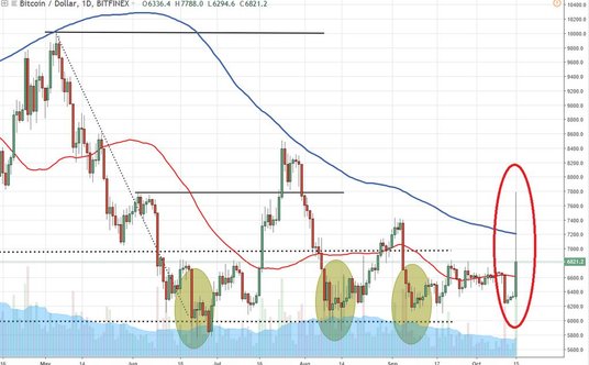 W serwisach informacyjnych pojawiły się dwie prawdopodobne przyczyny porannego skoku. Pierwsza – zakupy wieloryba. Mianem tego ostatniego określa się największych graczy na rynku bitcoina (32 graczy tego kalibru posiada 1 mln bitcoinów). Druga – masowa wymiana stablecoina tether.