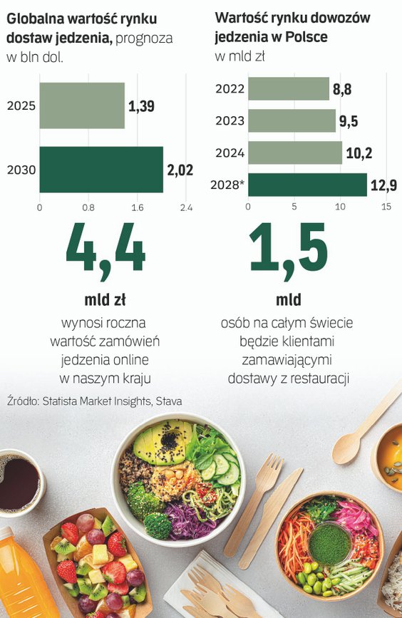 Każdy z graczy wierzy, że wzrosty nad Wisłą przyjdą, bo na naszym rynku są fundamenty w postaci coraz wyższych dochodów Polaków, rosnącej cyfryzacji płatności i wciąż dużego dystansu do odrobienia względem bardziej zaawansowanych w dostawach jedzenia rynków. Wystarczy wspomnieć, że w Chinach w każdej minucie realizowanych jest – jak podaje „China Daily” – aż 56 tys. dostaw, zaś w Tajlandii przeszło 20 proc. użytkowników korzysta z aplikacji do zamawiania od trzech do sześciu razy w tygodniu (sondaż Rakuten Insight 2024). Grand View Research prognozuje, że globalna wartość tego rynku do 2030 r. będzie rosła w tempie średnio 9 proc. rocznie. Tymczasem owa dynamika nad Wisłą ma być znacznie większa. A właściwie już jest imponująca. Według Katarzyny Frydrych kategoria dostaw rozwija się w tempie dwucyfrowym.