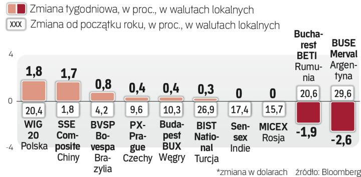 Jak dotąd wygląda na to, że pierwsze półrocze okazuje się dla rynków wschodzących dobre. Znów przyciągały one inwestorów, a wiele indeksów mocno urosło od początku roku. WIG20 zyskał od początku stycznia około 20 proc., turecki BIST 100 wzrósł w tym czasie o 27 proc., a argentyński Merval skoczył o około 30 proc. Węgierski BUX zyskał w tym roku jedynie około 10 proc., ale niedawno pobił historyczny rekord. Są oczywiście indeksy, które radzą sobie słabiej. Brazylijski Bovespa zyskał od początku stycznia tylko nieco ponad 4 proc., a chiński Shanghai Composite prawie 2 proc. To jednak przypadki dosyć specyficzne.