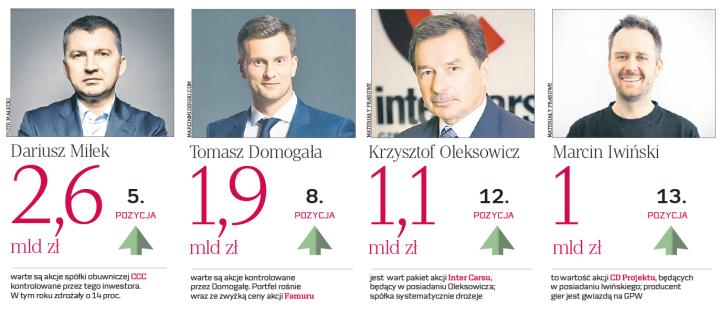 Roman Karkosik, Zbigniew Jakubas, Leszek Czarnecki – te nazwiska rozpalają wyobraźnię inwestorów. Tymczasem wraz z trwającą hossą grono giełdowych miliarderów systematycznie się powiększa. Jego trzon stanowią przedsiębiorcy, którzy kilka lat temu wprowadzili swoje biznesy na giełdę. Niektórzy – jak Tomasz Biernacki, współwłaściciel sieci sklepów Dino – zrobili to dopiero w tym roku, a już awansowali do pierwszej dziesiątki najbogatszych prywatnych inwestorów. Takich osób będzie przybywać.