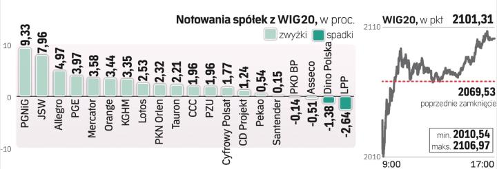 Kiedy natomiast pierwszy, wtorkowy strach minął, byki zaczęły spoglądać na północ. Szybko wzięły się za odrabianie strat. Po godzinie handlu większość z nich została już zniwelowana. Przed południem praktycznie nie było po nich śladu. WIG20 zyskiwał prawie 1 proc. Poranne mocne straty odrabiały też inne europejskie rynki, chociaż trzeba podkreślić, że nie szło im to tak dobrze, jak Warszawie. Na szarym końcu oczywiście znów był rosyjski RTS, który znajdował się mocno pod kreską.