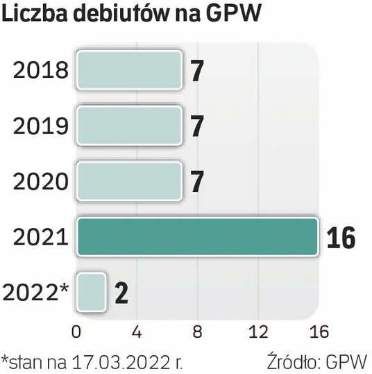 – Wojna w Ukrainie na razie zamroziła rynek IPO w Polsce i znacząco ograniczyła aktywność transakcyjną na świecie. Natomiast nie skreślałbym jeszcze roku 2022 – komentuje Bartosz Margol, partner w zespole ds. rynków kapitałowych PwC. Dodaje, że wśród wielu potencjalnych emitentów widać podejście, które do pewnego stopnia jest lekcją wyciągniętą z początku pandemii (fala transakcji po stosunkowo krótkim okresie niepewności). Spółki przyjmują strategię „oczekiwania w gotowości”: prace nad IPO są kontynuowane i przygotowywane są nowe, potencjalne kalendarze transakcji (z perspektywą na drugi, trzeci, czwarty kwartał 2022 r. i późniejsze).Tak, by przy sprzyjających warunkach i pojawieniu się „okna” można było szybko przeprowadzić transakcję.