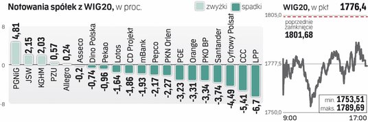 W Warszawie wyprzedaż najmocniej odczuli posiadacze akcji dużych spółek z WIG20, z których większość znalazła się na celowniku sprzedających. Biorąc pod uwagę zasięg czwartkowych spadków, negatywnie wyróżniły się walory spółek odzieżowych i banków. Nie pomogły nawet lepsze od oczekiwanych wyniki kwartalne PKO BP.