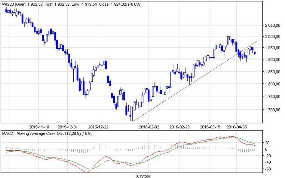 WIG20 rozpoczął poniedziałkową sesję z poziomu 1932 pkt., a po kwadransie spadał o 0,7 proc. do 1925 pkt. Słaby początek to pokłosie braku porozumienia Rosji i krajów OPEC w sprawie zamrożenia wydobycia ropy naftowej.