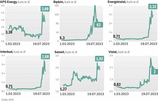 Obserwujemy je również na warszawskiej giełdzie. Dwa lata temu szybowały kursy producentów gier, spółek technologicznych i biotechnologicznych oraz podmiotów działających w sektorze OZE. Teraz przyszedł czas na takie firmy jak APS Energia, Elektrociepłownia Będzin, Vistal Gdynia, Energoinstal, Sanwil czy Interbud (więcej w ramkach powyżej).